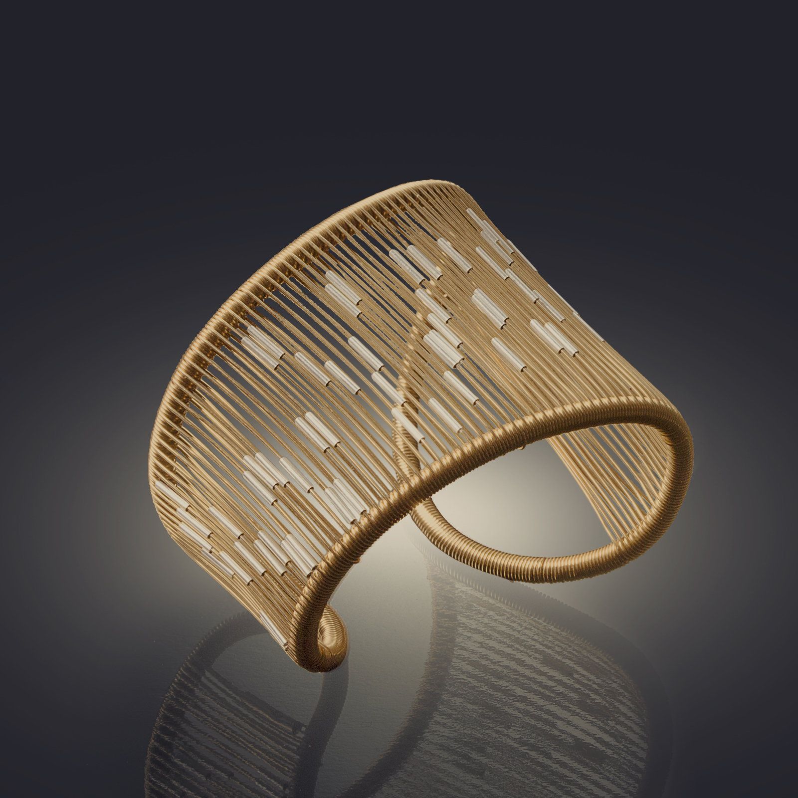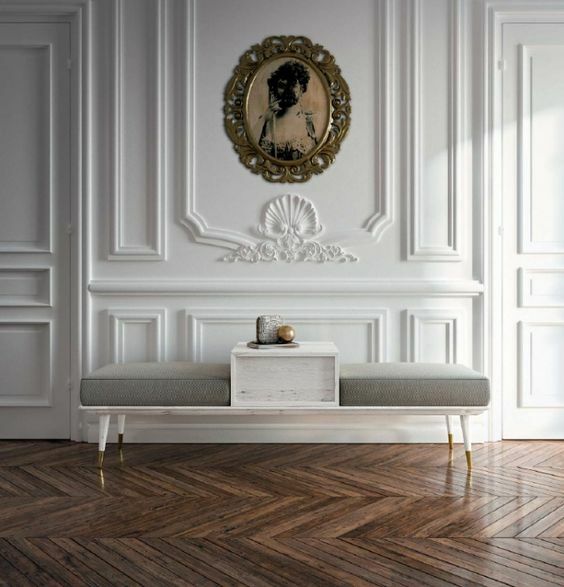 Antique rigor and nobility are combined with regular geometric constructive modern forms. Pure gold, white and beige colors
